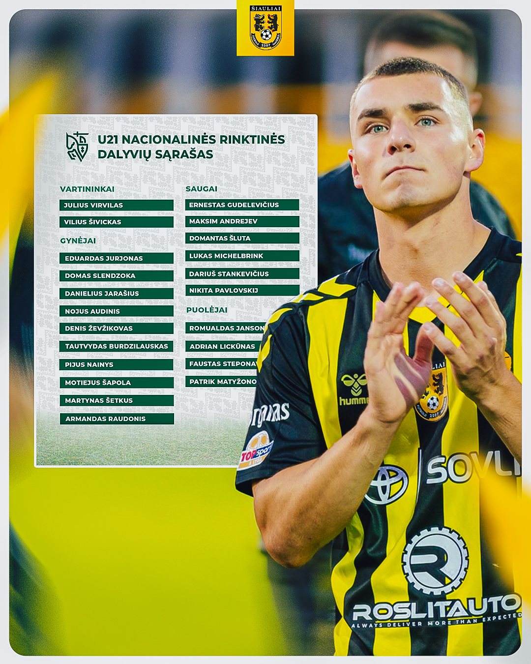 Danielius Jarašius iškviestas į Lietuvos vaikinų iki 21 metų rinktinę